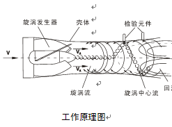 流量傳感器的流通剖面類似文丘利管的型線。在入口側(cè)安放一組螺旋型導(dǎo)流葉片,當(dāng)流體進(jìn)入流量傳感器時(shí),導(dǎo)流葉片迫使流體產(chǎn)生劇烈的旋渦流。當(dāng)流體進(jìn)入擴(kuò)散段時(shí),旋渦流受到回流的作用,開始作二次旋轉(zhuǎn),形成陀螺式的渦流進(jìn)動(dòng)現(xiàn)象。該進(jìn)動(dòng)頻率與流量大小成正比,不受流體物理性質(zhì)和密度的影響,檢測元件測得流體二次旋轉(zhuǎn)進(jìn)動(dòng)頻率就能在較寬的流量范圍內(nèi)獲得良好的線性度。信號經(jīng)前置放大器放大、濾波、整形轉(zhuǎn)換為與流速成正比的脈沖信號,然后再與溫度、壓力等檢測信號一起被送往微處理器進(jìn)行積算處理,最后在液晶顯示屏上顯示出測量結(jié)果(瞬時(shí)流量、累積流量及溫度、壓力數(shù)據(jù))。