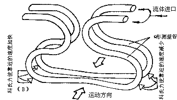 通過(guò)在端面兩回路之間合理的安裝傳感器,這些由科氏力引入的運(yùn)動(dòng)就可用來(lái)精確測(cè)定流體的質(zhì)量流量。