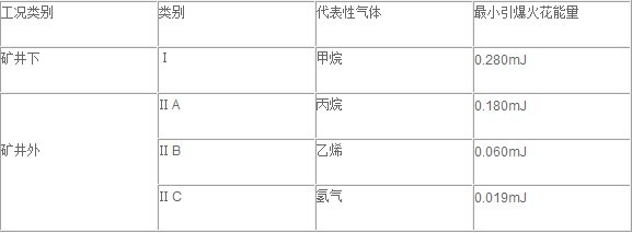 II為除礦井以外的場所使用的電氣設備(II類電器設備又分為:IIA、IIB、IIC三個類別)。