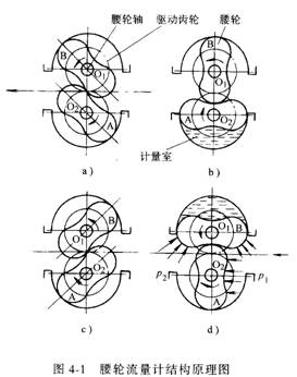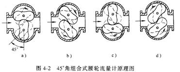 腰輪流量計(jì)的工作原理可以從圖4-1中的4個過程來分析。
