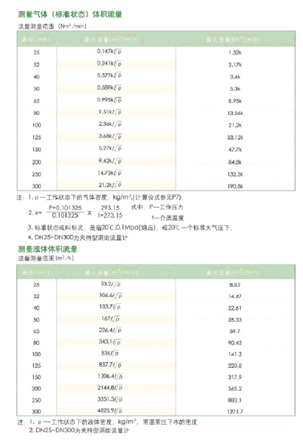 ②測(cè)量液體時(shí),上限流速受壓損和“氣蝕”現(xiàn)象限制,一般為7m/s