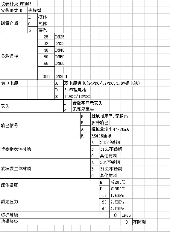 說明:FFM63系列智能渦街流量計(jì),DN25,測(cè)量氣體,電源為24VDC(12VDC),帶數(shù)字顯示表頭,輸出信號(hào)為電流輸出,傳感器及旋渦發(fā)生體材料均為304不銹鋼,高溫型,額定壓力為1.6MPa,防護(hù)等級(jí)為IP65,不防爆。