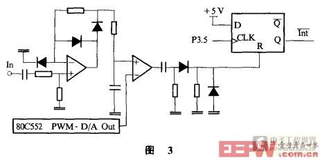 另外,為了防止干擾波及發(fā)射波寬度和多次回波的重疊對測量的影響,本設計在接收回波的電路中,增加了一個電平可變的門限,該電平由80C552的PWM脈寬調(diào)制端通過必要的接口電路形成的D/A轉(zhuǎn)換器的輸出提供。門限電平的高低應盡量使產(chǎn)生回波的中斷時刻發(fā)生在靠近回波波形的中心位置,以減小波形寬度對測量時間的影響。