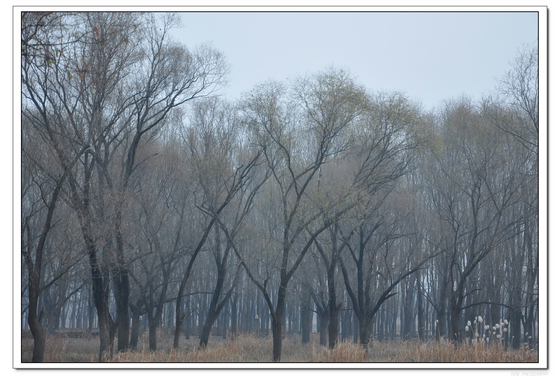 < 冬日的三河灘柳林風景